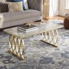 Bàn trà sắt sơn tĩnh điện, hoặc inox mạ PVD . Mặt bàn bằng đá hoặc gỗ. Kích thước theo yêu cầu của khách hàng.