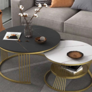 Bàn trà khung sắt sơn tĩnh điện, mặt kính cường lực đen